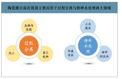 陶瓷膜目前在我國主要應(yīng)用于過程分離與特種水處理兩大領(lǐng)域