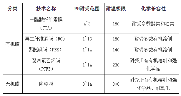 陶瓷膜材料陶瓷膜是以氧化鋁(Al2O3)、氧化鋯(ZrO2)和氧化鈦(TiO2)等粉體原料經(jīng)特殊工藝制備而成的膜。陶瓷膜的PH耐受范圍更廣、耐溫極限更高,化學(xué)兼容性更大,可耐壓3Mpa以上,且克服了有機膜在耐有機溶劑、機械強度等方面的不足,是當(dāng)之無愧的高性能膜材料。