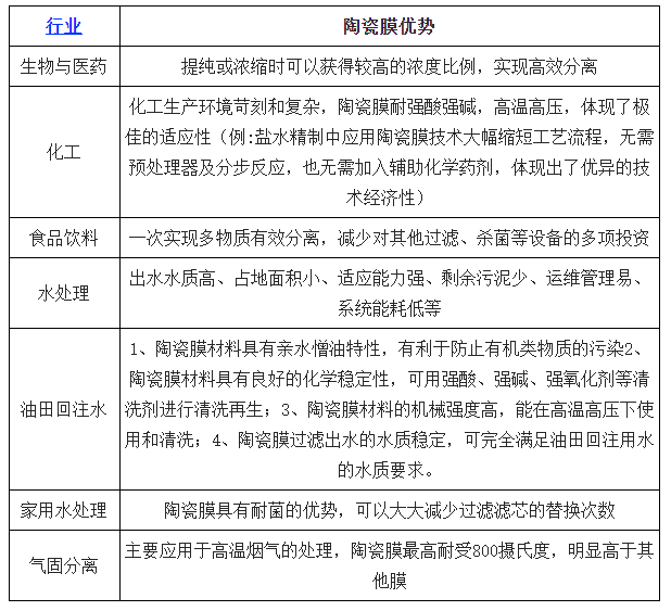 陶瓷膜各細(xì)分領(lǐng)域具體應(yīng)用情況與前景